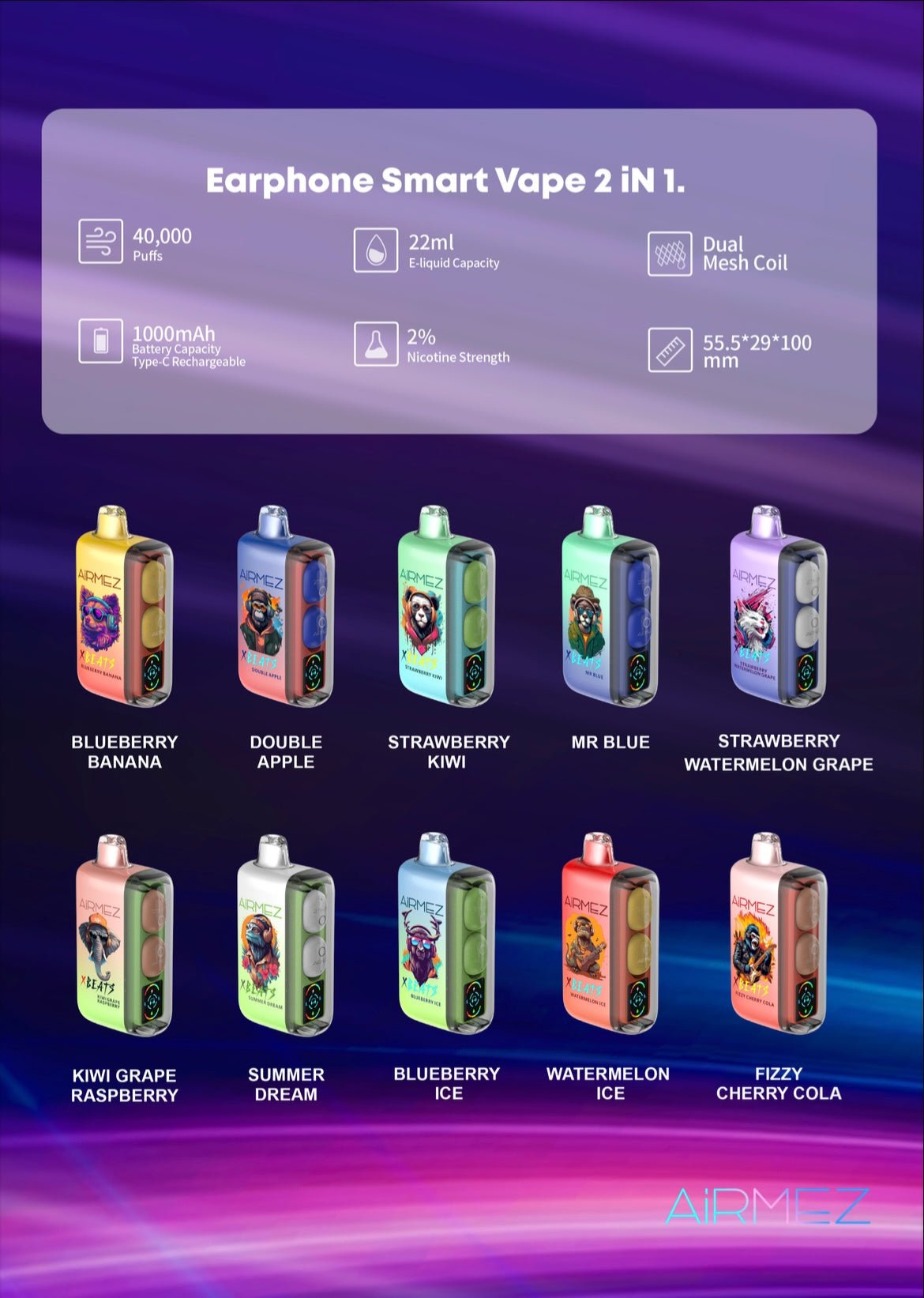 Airmez XBeats 40K Disposable Vape – 40,000 Puff és Beépített Bluetooth TWS Fülhallgató