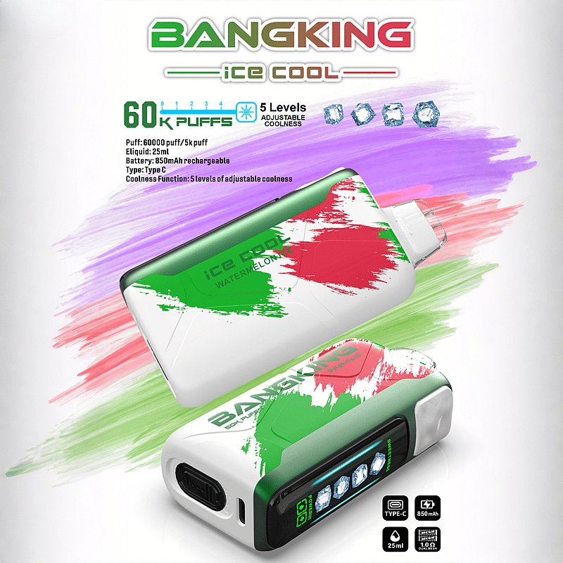 Bang King Ice Cool 60000 Puffs Eldobható Vape – Állítható Hűtési Szint, LED Kijelző, 25ml E-Liquid