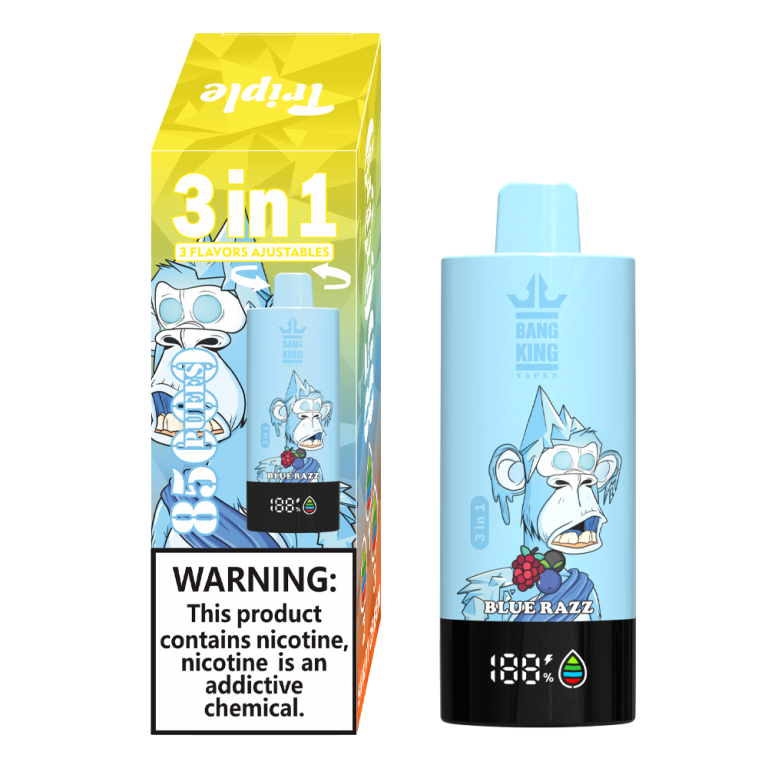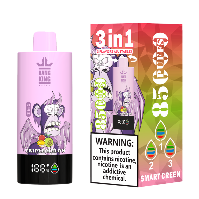 A Bang King Triple 85000 Puffs egy innovatív 3 ízes eldobható vape, amely ötvözi a hosszú élettartamot, a nagy e-liquid kapacitást és a modern technológiát.
