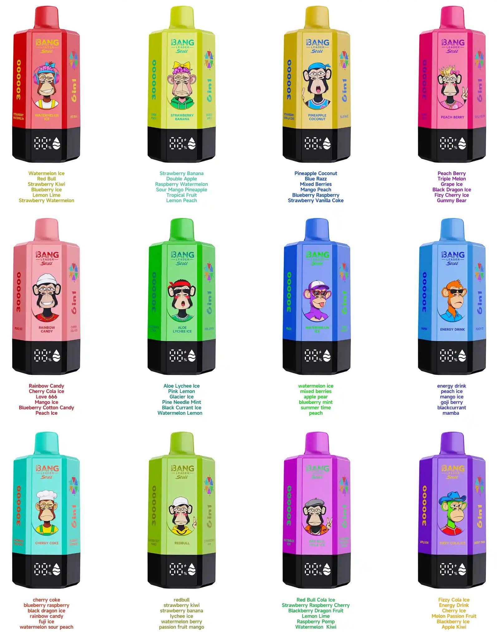 A Bang Leader Stoll 300K Puffs egy nagy teljesítményű 6 az 1-ben eldobható vape, amely akár 300000 slukk kapacitást, intelligens LED kijelzőt, 650mAh újratölthető akkumulátort és mesh coil technológiát kínál. A készülék lehetővé teszi hat különböző íz közötti váltást, valamint 0%–5% nikotinerősség közül választható. A modern Monkey dizájn és a hosszú üzemidő miatt ideális választás azok számára, akik tartós és sokoldalú vaping élményt keresnek.